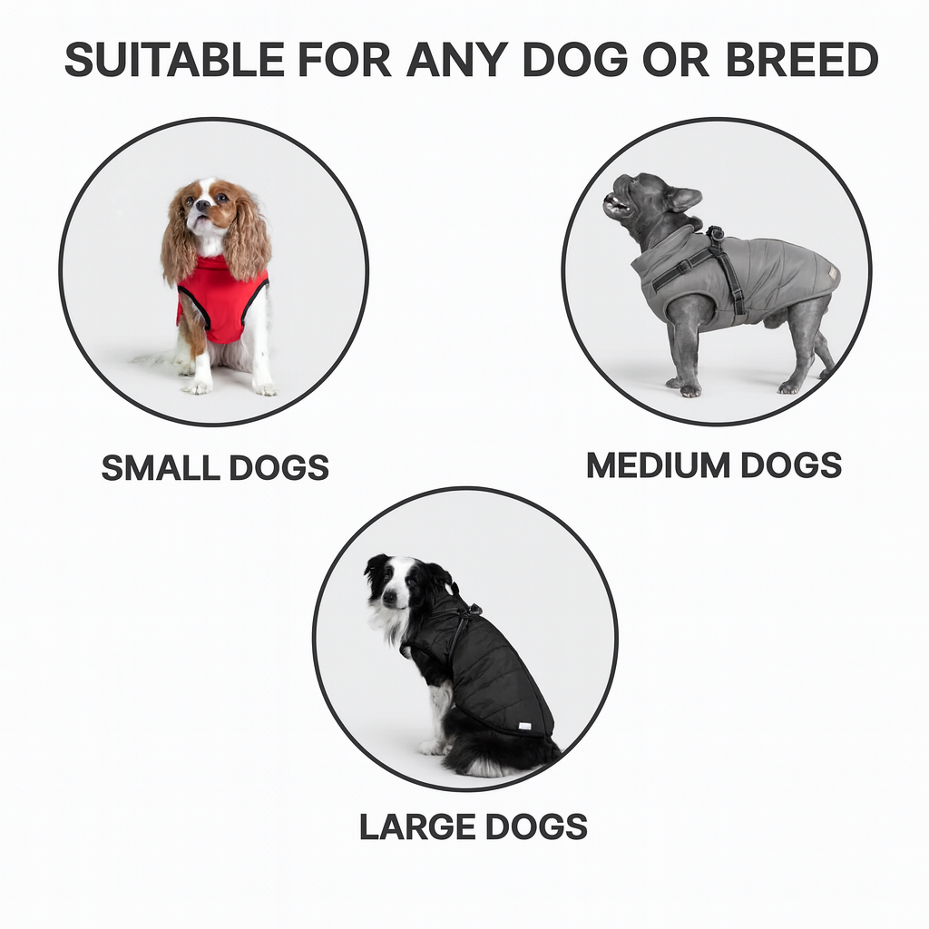 Measure your dog’s chest and back length, then compare with our size chart to ensure a snug, comfortable fit.