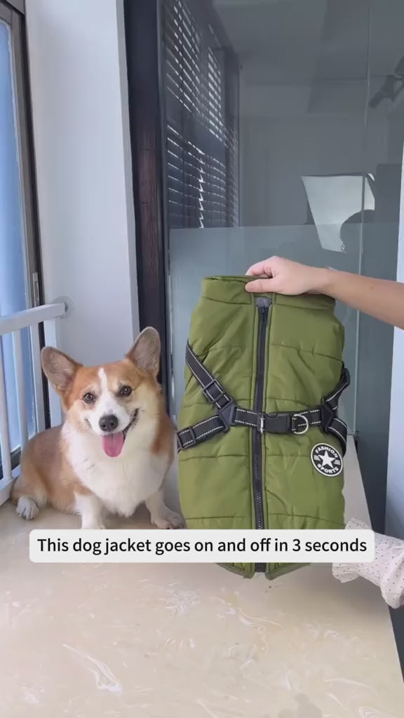 Keep your dog warm and protected with our waterproof winter jacket designed for comfort and convenience.